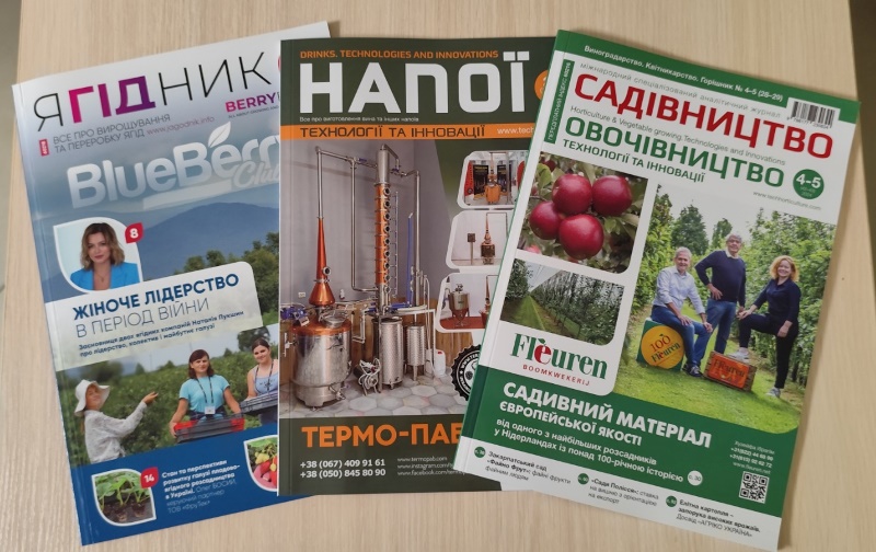 – Журнал «Садівництво і Овочівництво. Технології та Інновації» (www.techhorticulture.com). Мета видання – інформувати про актуальні тенденції в галузі садівництва та овочівництва, популяризувати передовий європейський і світовий досвід вирощування садових та овочевих культур, презентувати передові технології та сучасне обладнання, просувати нові технології заморожування, переробки й упакування плодово-ягідних і овочевих культур, сприяти вирішенню питань у просуванні продукції та виходу на міжнародний ринок тощо.