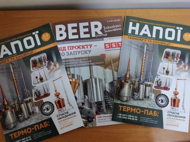 – Журнал «Напої & Пиво. Технології та Інновації» » (www.techdrinks.info) – це міжнародне видання про вино, пиво, сидри та інші міцні, слабо- та безалкогольні напої, а також виноград та інші інгредієнти для виробництва цих напоїв. Журнал виходить із 2011 року 2 рази на рік.Після повномасштабної війни проєкт «Напої» об’єднався із проєктом «Пиво», який до 2022 року був окремим успішним проєктом. Зараз журнал виходить друком у форматі «перевертайко»: з однієї сторони – «Напої. Т. І.», а з іншої – «Пиво. Т. І.».