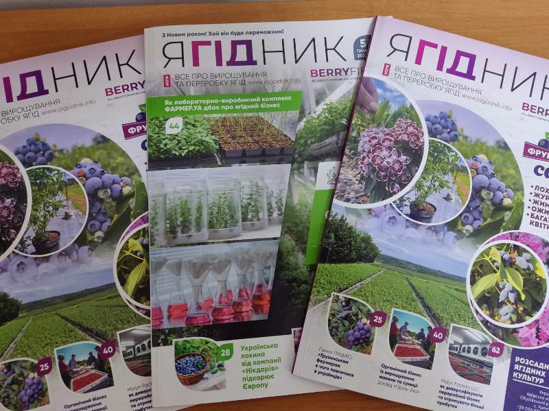 – Журнал «Ягідник» (www.jagodnik.com) висвітлює актуальні тенденції ринку ягід, передовий європейський і світовий досвід, новітні технології вирощування, зберігання, переробки й упаковки ягід, а також продажів продукції, в т.ч. розширення експортних шляхів. Журнал розкриває теми, що стосуються вирощування усіх популярних ягід (суниці, малини, чорної смородини, лохини (чорниці високорослої), агрусу, аронії) та маловідомих (нішевих) культур. Виходить з 2016 р., 4 разів на рік.